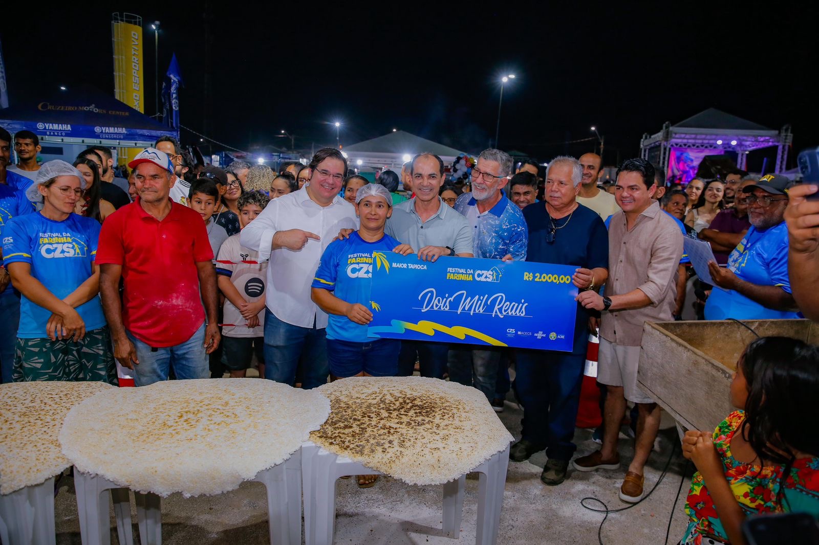 A Prefeitura de Cruzeiro do Sul realizou, na noite desta sexta-feira (29),o concurso da maior tapioca feita no Festival da Farinha,A competição reuniu quatro agricultores que demonstraram habilidade e criatividade no preparo de um dos derivados mais tradicionais da mandioca.