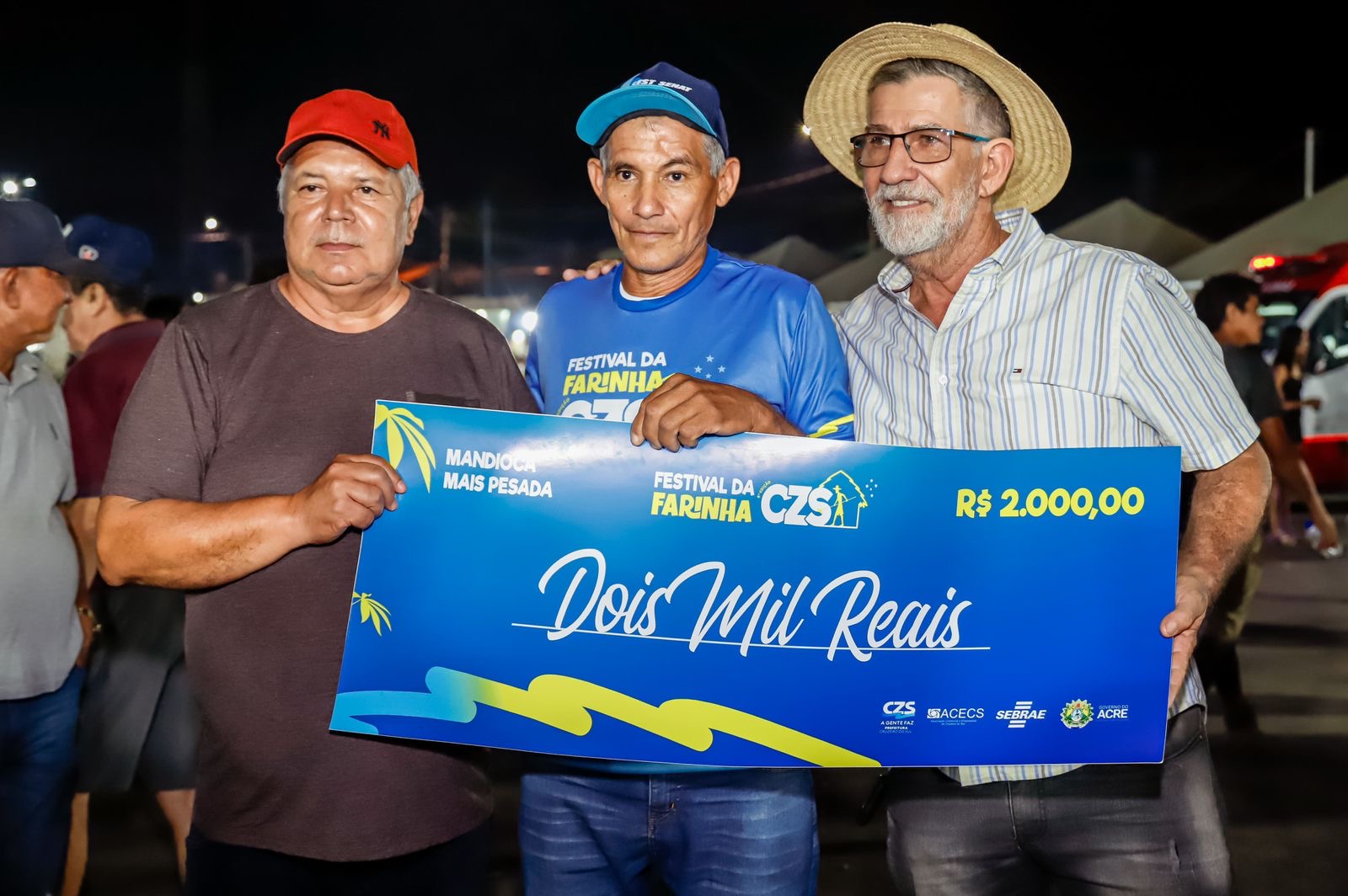 A mandioca mais longa mediu 2,89 metros e foi cultivada pelo agricultor José Oliveira do Nascimento, mais conhecido como Zeca da Farinha, morador do Alto Pentecostes. Já a mais pesada, com 14,3 quilos, foi colhida por João Oliveira de Miranda, popularmente chamado de João Cambão, que vive no Ramal 3, da Br 364. Cada campeão ganhou o valor de R$2 mil.
