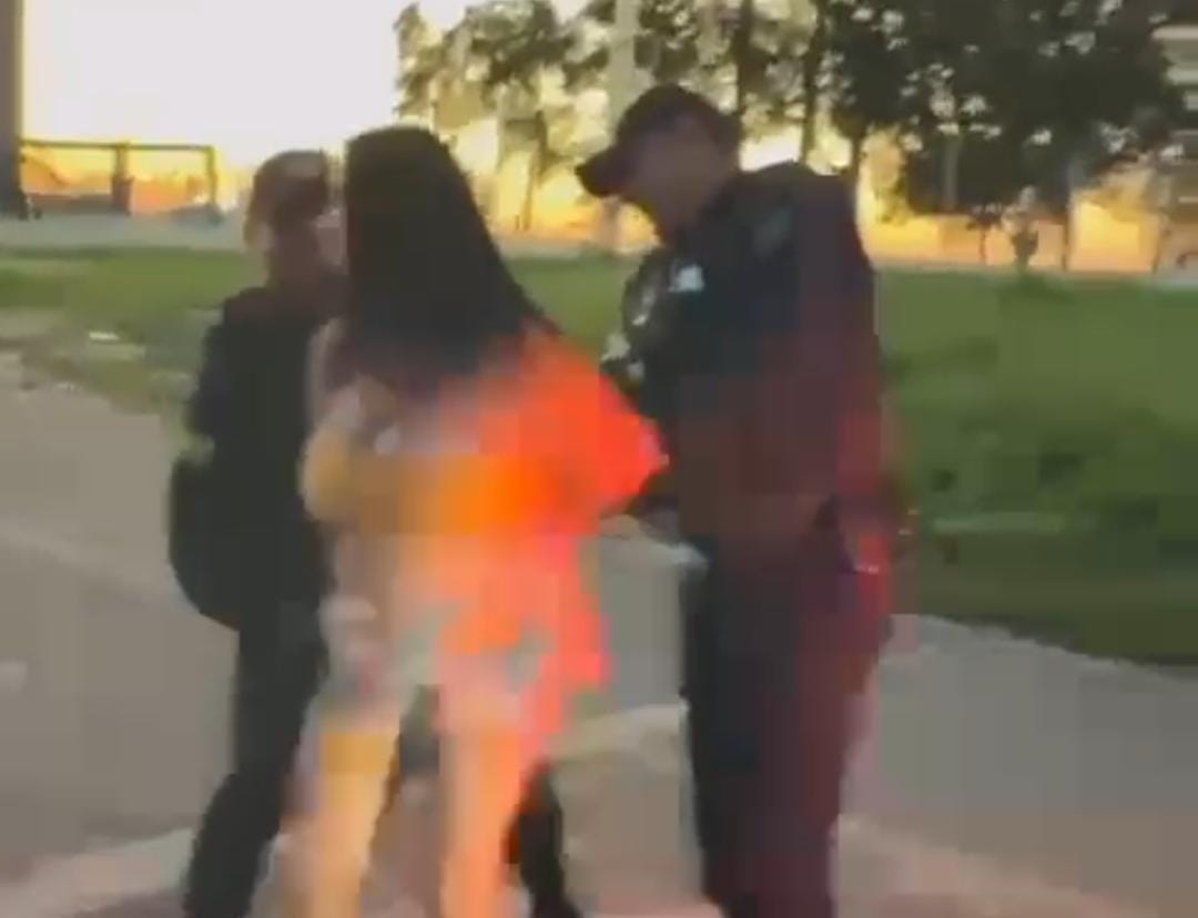 A Polícia Militar, que foi chamada ao local pela própria professora, registrou que encontrou Karlla em via pública, bastante alterada: “A solicitante informou que seu vizinho estava lhe filmando enquanto ela estava despida. Ela afirma que sofre de transtorno de bipolaridade. Quando a equipe chegou ao endereço citado, encontrou Karlla Barbosa Godoy em via pública já bastante alterada falando frases desconexas e xingando seu vizinho, Andson. Ela passou a ameaçá-lo dizendo que iria matar ele devido um cano de água que estava do lado da casa dela exposto, que inclusive chegou a cortar o cano de água. Ela partiu para cima de Andson e lhe chutou, sendo necessário ser contida pela guarnição. Desta forma, a guarnição deu voz de prisão para a autora pelo crime de ameaça e vias de fato. Ela passou a ameaçar a esposa de Adson que está grávida, dizendo que iria fazê-la perder o filho, e com ameaças de morte”, diz o boletim.