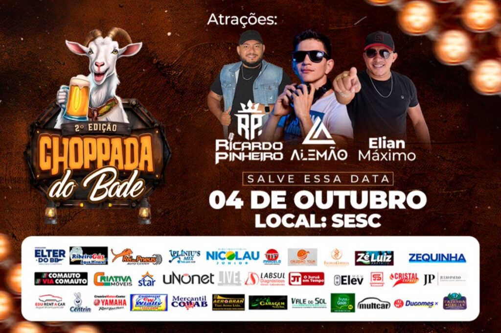 A segunda edição da Choppada do Bode será realizada no dia 4 de outubro, no SESC de Cruzeiro do Sul, reunindo música e gastronomia em um evento que promete agitar a cidade.