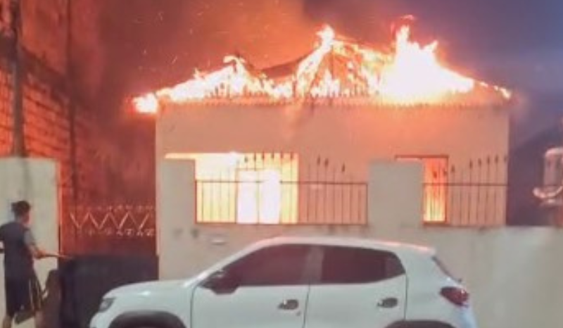 Vídeos gravados por moradores mostram a residência em chamas, com fumaça intensa. O homem fugiu do local de motocicleta.