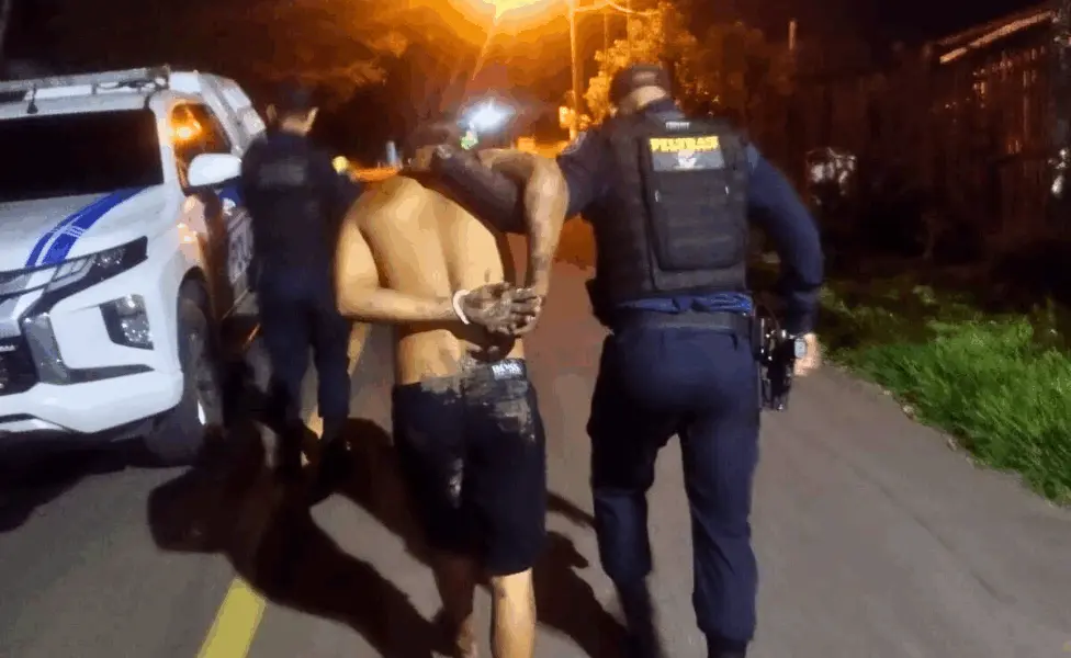 Ao avistar a viatura da PM, ele correu para uma área de mata, mas foi capturado. “A Polícia Militar recebeu a informação de que tinha um indivíduo transitando por aquela região com um mandado de prisão em aberto, foragido da Justiça do Amazonas. A nossa guarnição empreendeu busca e conseguiu lograr êxito na prisão desse indivíduo foragido da Justiça do Amazonas pelos crimes de ameaça e e também lesão corporal, artigo 129, no contexto da violência doméstica, contra a mulher”.