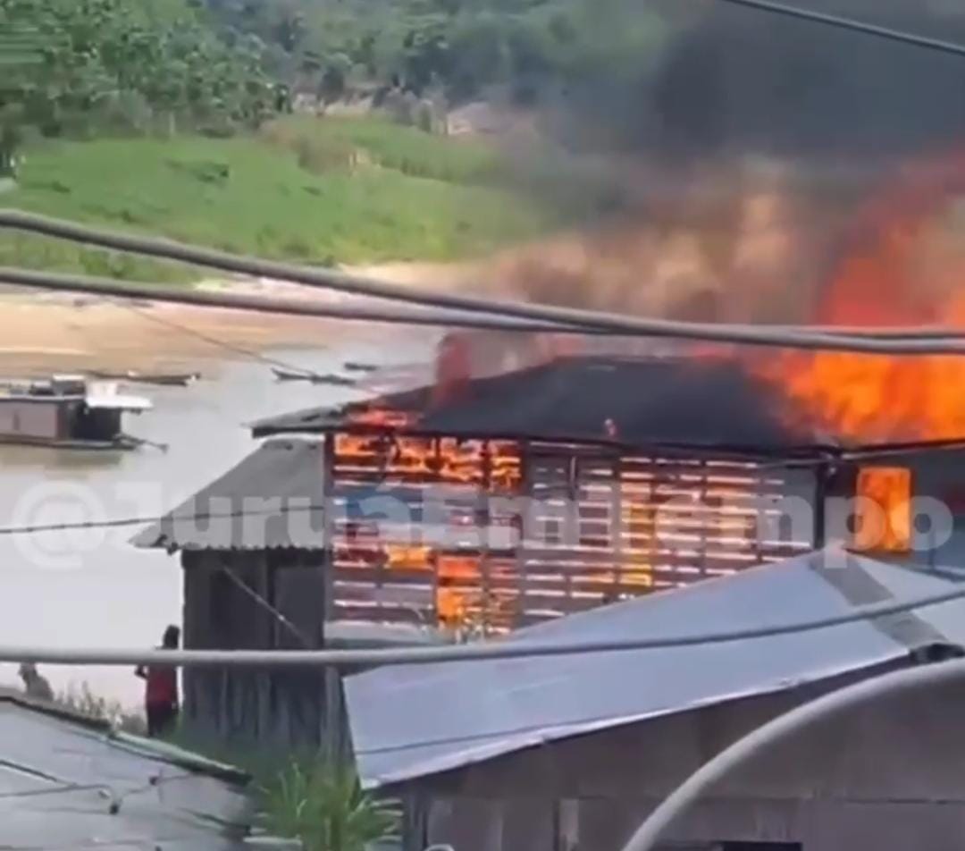 Na manhã desta quinta-feira, 18, um incêndio de grandes proporções destruiu uma residência de madeira no bairro da Lagoa, em Cruzeiro do Sul, próximo à Ponte da União.