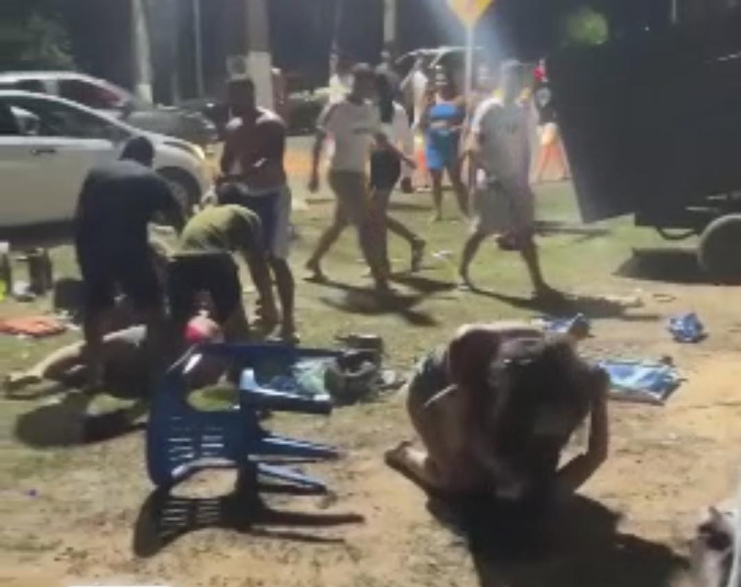 Nas redes sociais, circulam vídeos mostrando momentos do tumulto: homens trocando socos, mulheres se debatendo no chão e outras pessoas tentando separar os brigões.