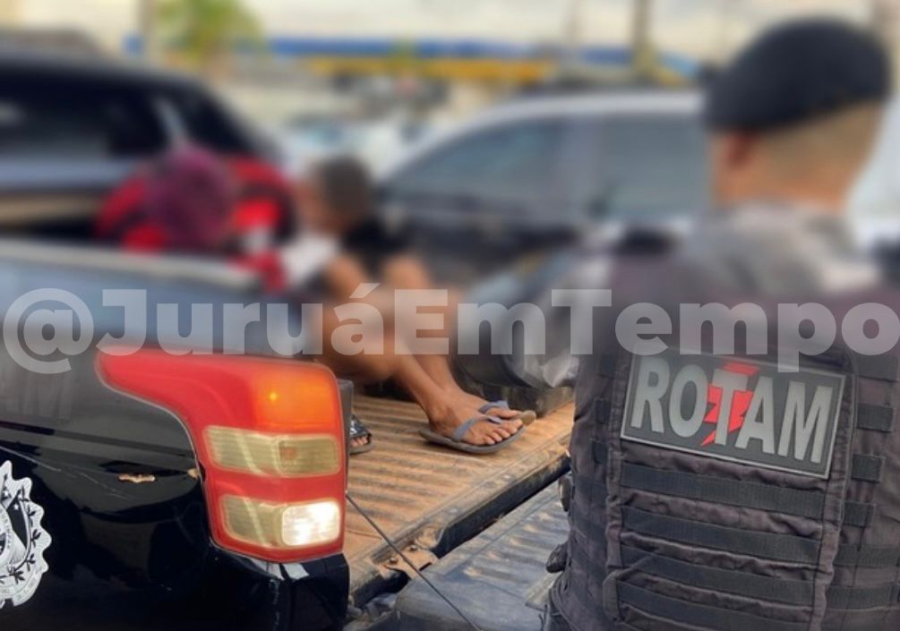 Os envolvidos foram identificados como Pedro Henrique Silva Roque, de 19 anos, e um adolescente de iniciais L.F.M.S., de 16 anos. Eles estavam em uma motocicleta Honda Titan de cor vermelha, que havia sido tomada em assalto na noite de terça-feira (2), no bairro Cidade Nova. Após consulta da placa, os militares confirmaram que o veículo era produto de roubo.