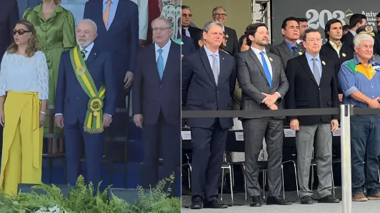 O presidente Luiz Inácio Lula da Silva (PT) participou na manhã deste domingo (7) do desfile de 7 de Setembro na Esplanada dos Ministérios, em Brasília. Lula chegou por volta das 9h04 ao local e desfilou em carro aberto ao lado da primeira-dama, Janja da Silva.