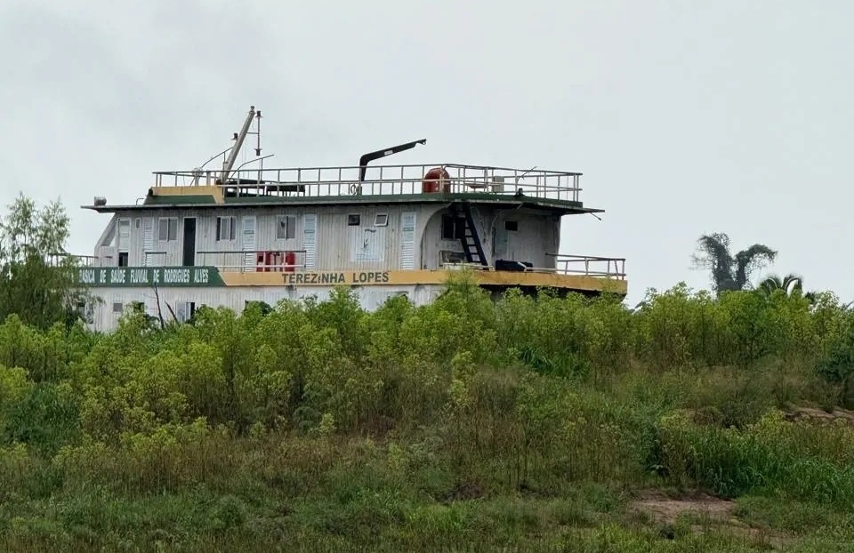 A embarcação, projetada para atender comunidades ribeirinhas isoladas, está encostada às margens do rio Juruá e já apresentou episódios de afundamento parcial por falta de manutenção e vigilância.