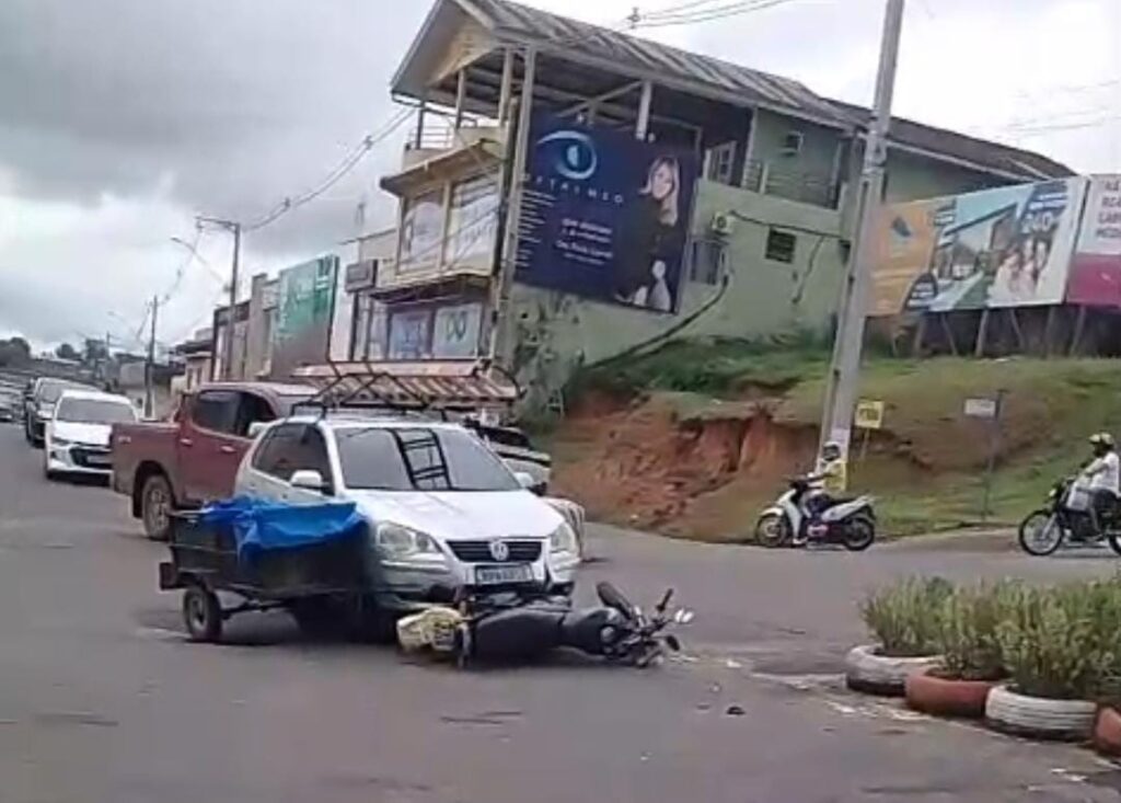 Na tarde deste sábado, 6, foi registrado mais um acidente de trânsito no Centro de Cruzeiro do Sul. A colisão envolveu um carro e uma motocicleta com carrocinha, e ocorreu na rotatória próxima ao Super Econômico, na Avenida Getúlio Vargas — local conhecido pela recorrência de acidentes.