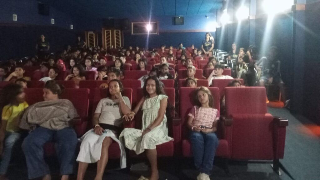 A atividade reuniu mais de 130 crianças, que tiveram a oportunidade de assistir a um filme e conhecer de perto o funcionamento do cinema. Para muitas delas, essa foi a primeira experiência em uma sala de exibição.