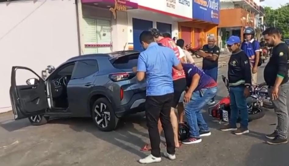 Colisão entre carro e moto é registrada em Cruzeiro do Sul; veja o vídeo