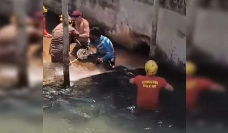 O animal estava escondido embaixo de uma estrutura de concreto que dá acesso aos banhistas do local. Populares acionaram o Corpo de Bombeiros de Goiás (CBMGO) para ralizar o resgate da sucuri.