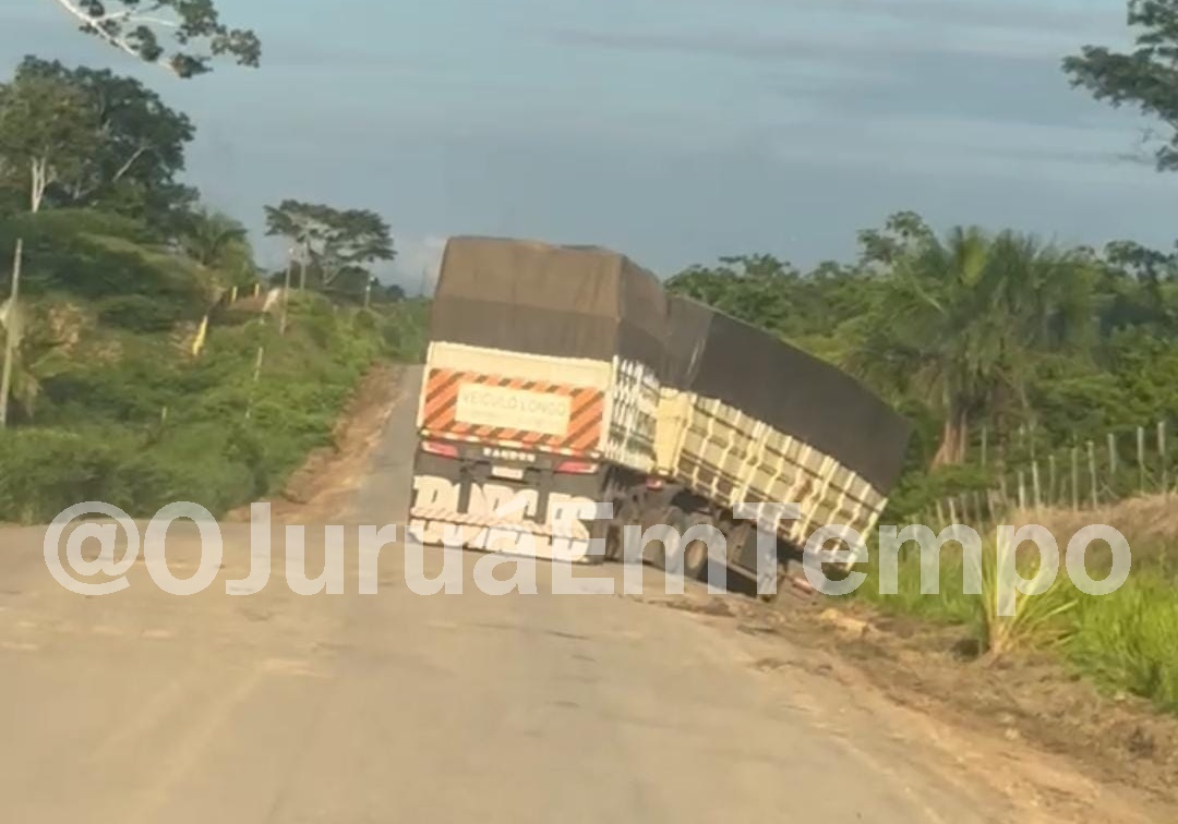 Uma carreta saiu da pista e ficou às margens da BR-364 na noite de quarta-feira (29), após o motorista tentar desviar de um buraco , no trecho do São João, logo após a comunidade Liberdade. O condutor perdeu o controle do veículo, que por pouco não tombou.