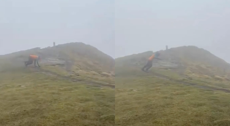 A cena, filmada por Thomas Soullet na última quinta-feira (23), mostra o homem tentando caminhar contra o vento a cerca de 1.632 metros de altitude, inclinando o corpo para frente enquanto rajadas violentas o empurram para trás.
