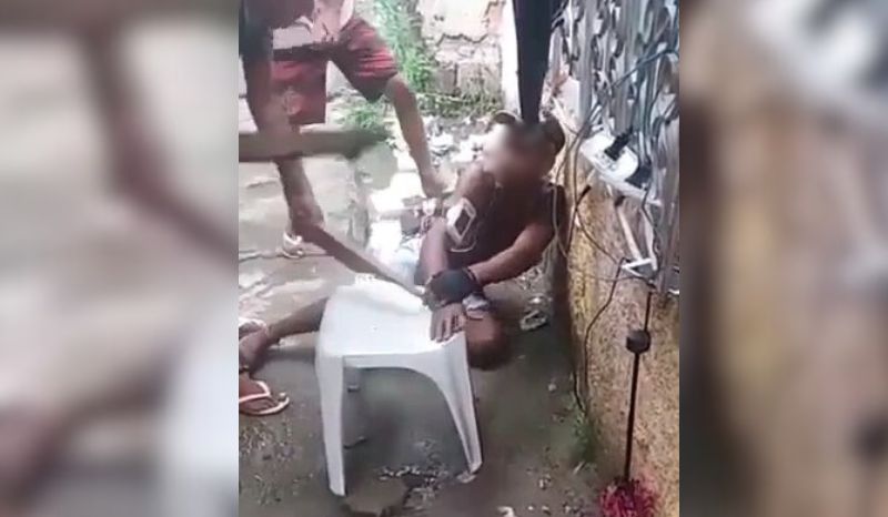 Um vídeo que circula nas redes sociais mostra integrantes de uma possível facção criminosa submetendo um homem, não identificado, ao conhecido ‘tribunal do crime’. A identidade da vítima e o local exato da gravação ainda são desconhecidos. No registro de extrema violência, o homem aparece sentado no chão com as mãos apoiadas sobre uma mesa de plástico enquanto é atacado com pedaços de madeira por dois criminosos.