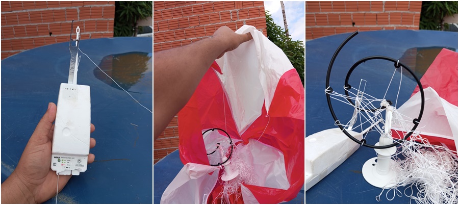“Esse aparelhinho caiu no meio da rua aqui, tem um negócio ligado nele, caiu num helicóptero, numa paraquedazinha… ele vinha numa paraquedazinha. Quem sabe o que é? Tem um aparelhinho ligado”, contou o morador, surpreso com o que viu.