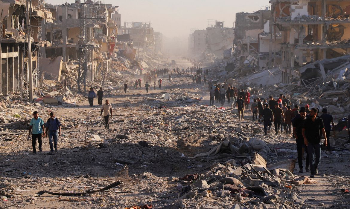 Grandes áreas de Gaza foram reduzidas a um deserto devido aos bombardeios israelenses ao longo de dois anos, que mataram cerca de 68 mil pessoas, de acordo com as autoridades de saúde de Gaza.