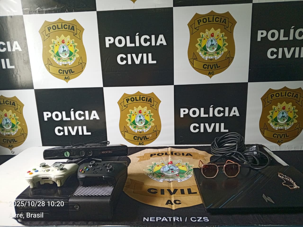 A Polícia Civil do Acre, por meio do Núcleo de Combate a Crimes Patrimoniais (Nepatri), elucidou um furto ocorrido no último sábado, 25 de outubro de 2025, por volta das 20h, em uma residência situada no bairro Aeroporto Velho, em Cruzeiro do Sul/AC. A ação investigativa resultou na identificação do autor, na recuperação dos objetos furtados e na condução do investigado à Delegacia Geral de Polícia Civil para prestar esclarecimentos.