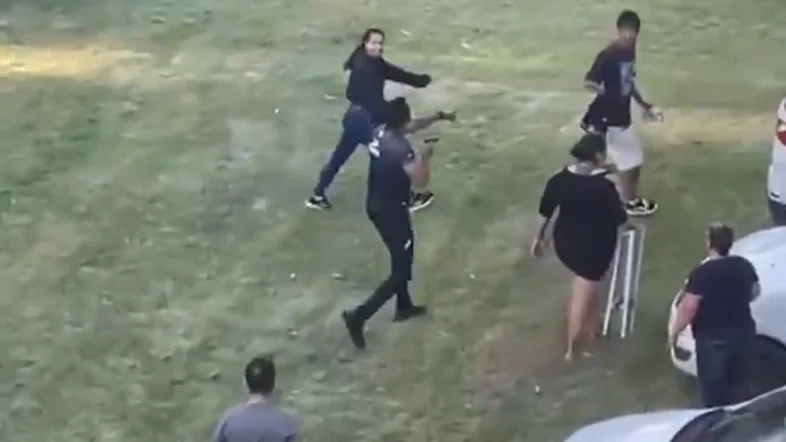 Vídeos que circulam nas redes sociais mostram agressões e o exato momento em que o quarto árbitro saca a arma. Em um deles, também é possível ver Garcia chutando e correndo uma pessoa na área de estacionamento do estádio. Veja: