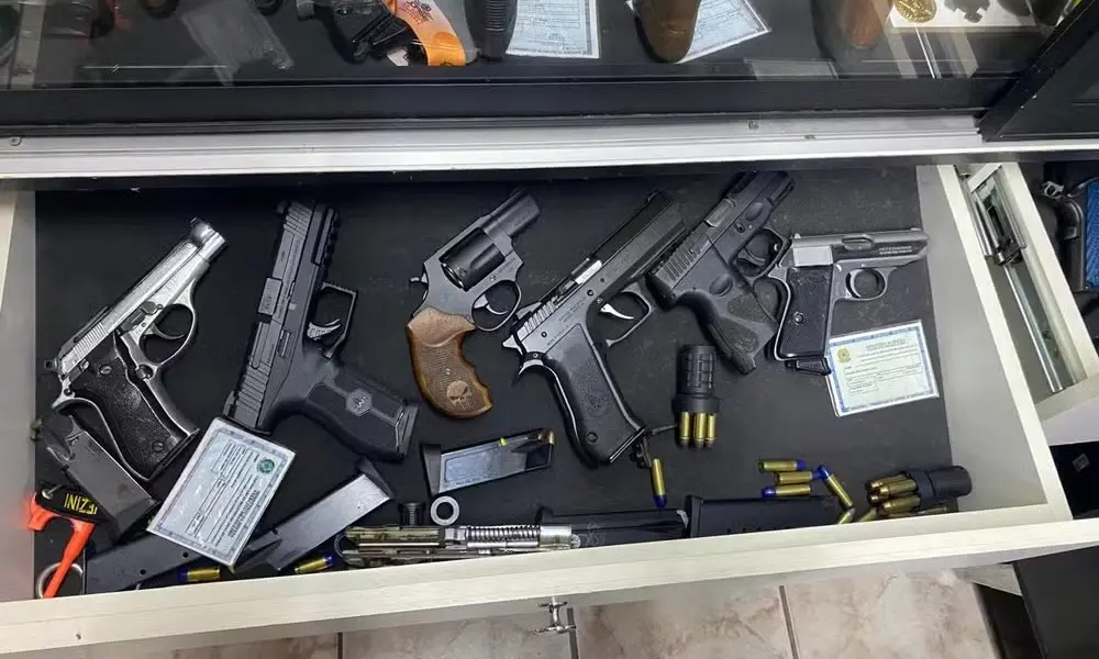 Na residência do militar, a polícia apreendeu mais de 20 armas de fogo, dezenas de carregadores e centenas de munições.