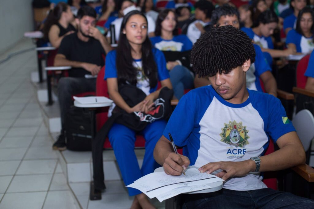 Com direito a tradução simultânea em Libras e transmissão ao vivo pelo canal YouTube.com/@educacaodoacre, o Aulão de Véspera do Pré-Enem Legal movimenta nesta sexta-feira, 7, os alunos da rede estadual. O encontro presencial é realizado das 7h30 às 11h30, na Escola Estadual Sebastião Pedrosa, em Rio Branco, e marca a preparação final para o primeiro dia das provas do Exame Nacional do Ensino Médio (Enem), que serão aplicadas neste domingo, 9.