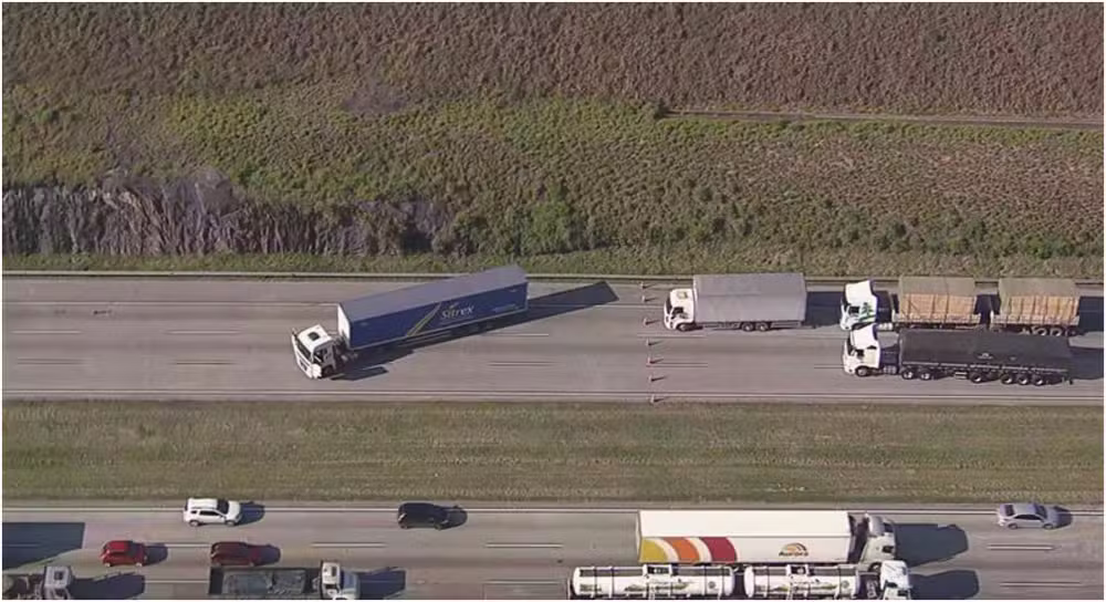 O motorista também teria sido instruído a não sair do veículo e a deixá-lo atravessado no meio da pista. Não se sabe se o caminhão transporta alguma carga.