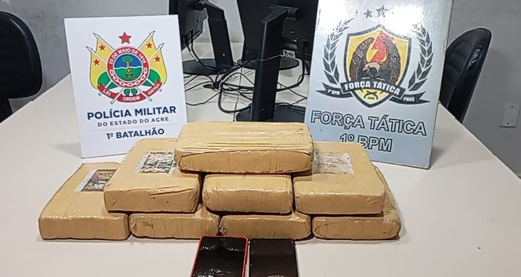 Um homem identificado como Udson Fonseca da Silva, de 29 anos, foi preso na noite desta quinta-feira, 27, após ser flagrado pela Polícia Militar transportando oito tijolos de maconha, totalizando cerca de oito quilos, escondidos dentro de uma bag utilizada para entregas de lanches. A abordagem ocorreu na Rua Santa Terezinha, no bairro João Eduardo 2, em Rio Branco.