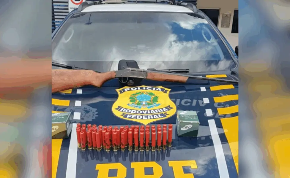 Durante a fiscalização, os agentes encontraram uma espingarda cuja documentação não estava em nome do motorista. Ele afirmou que tanto a arma quanto as munições seriam do pai dele.
