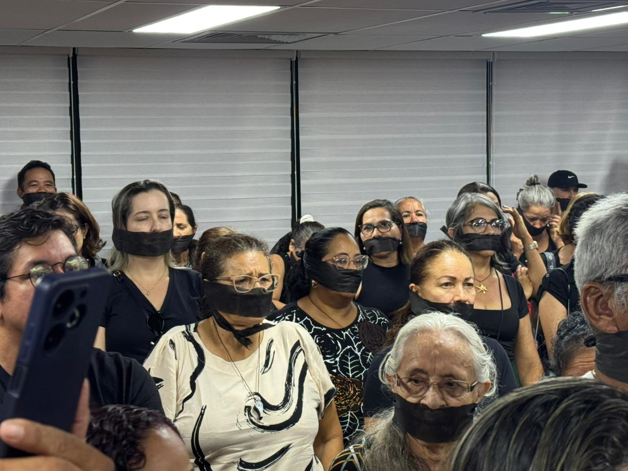 A mobilização começou do lado de fora da Aleac e, em seguida, se deslocou para o interior da Casa do Povo, onde os trabalhadores receberam apoio de parlamentares, entre eles Adailton Cruz e Edvaldo Magalhães. Durante o ato, os servidores realizaram um minuto de silêncio e cobriram boca e olhos com faixas escuras, simbolizando o sentimento de invisibilidade diante do impasse.