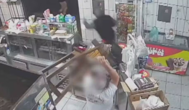 Um idoso, 65, foi flagrado reagindo a um assalto dentro de um açougue, na noite de segunda-feira (10), no bairro Jardim Matilde, em Ourinhos, interior de São Paulo. O homem usou um banco de madeira para expulsar os criminosos.