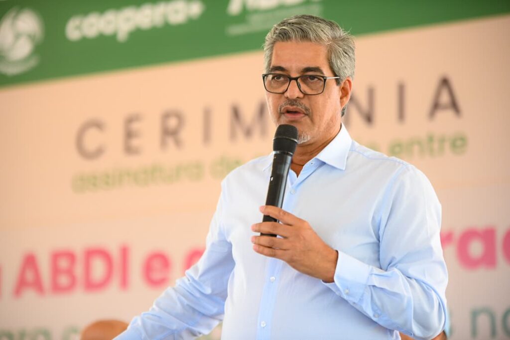 Edvaldo ainda ressaltou o trabalho dos dirigentes da Cooperacre José de Araújo e Manoel Monteiro. “Quero cumprimentar esses dois líderes que representam a nossa Cooperacre, um exemplo de uma aposta que se faz nas pessoas e na organização das pessoas na produção e que deu certo. Esse local, ali do lado, é o local que tem a maior indústria de castanha do Brasil, com maior capacidade de processamento de castanha do Brasil. Aqui atrás será inaugurada uma grande indústria para processar polpas de frutas e será a maior indústria de despolpa de polpas de frutas mais moderna da região Norte. E hoje, a ABDI vem aqui para fazer uma parceria”, frisou.
