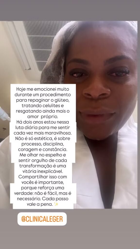 Na publicação, Jojo contou que se emocionou durante a sessão e revelou que chegou a chorar ao longo do procedimento. Segundo ela, o tratamento faz parte de um processo contínuo de cuidado com o corpo e fortalecimento da autoestima, que vem sendo construído há cerca de dois anos.