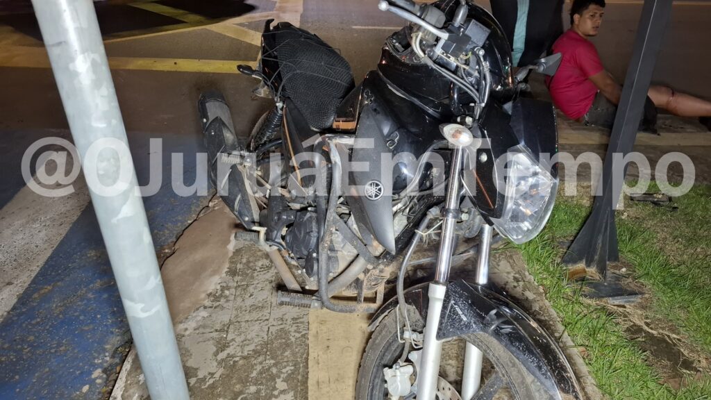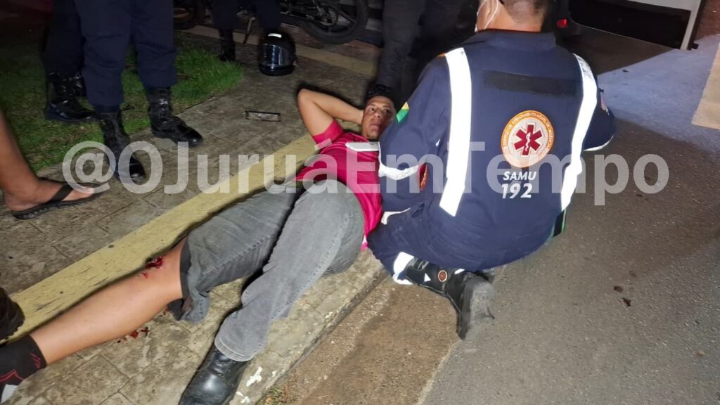 O motociclista Marcos Santana, de 21 anos, ficou gravemente ferido após sofrer um acidente de trânsito, na noite desta quarta-feira (17), na rua Rio de Janeiro, no bairro Ivete Vargas, em Rio Branco.