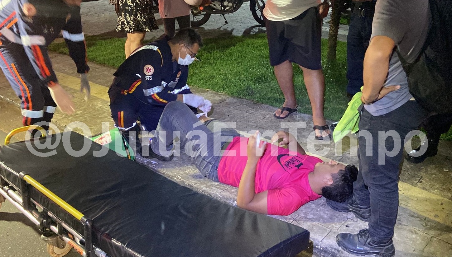 O motociclista Marcos Santana, de 21 anos, ficou gravemente ferido após sofrer um acidente de trânsito, na noite desta quarta-feira (17), na rua Rio de Janeiro, no bairro Ivete Vargas, em Rio Branco.