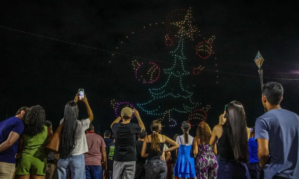 O céu de Rio Branco foi palco de um espetáculo inédito na noite deste sábado, 20, às 20h30, com a realização do primeiro show de drones da história do Acre. Promovido pela Prefeitura de Rio Branco, o evento integrou a programação do “Natal de Vida, Esperança e Dignidade”, realizado na região da Gameleira, como proposta do prefeito Tião Bocalom.