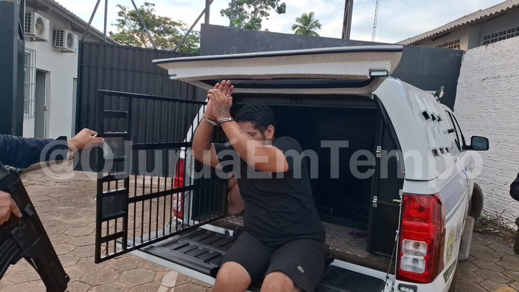 Com base nas características repassadas e no levantamento de informações, os suspeitos foram localizados no bairro Wanderley Dantas. As equipes policiais realizaram acompanhamento e conseguiram efetuar a abordagem em frente a um supermercado situado na Estrada Jarbas Passarinho, no bairro Placas.