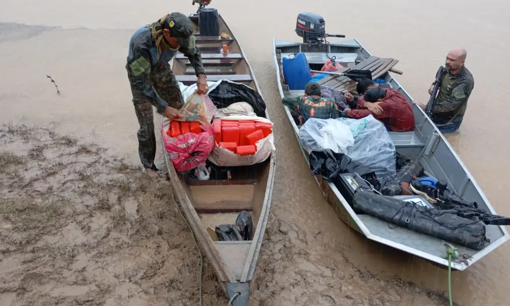 A equipe realizava patrulhamento fluvial quando localizou o grupo descendo o rio em uma embarcação que levava o entorpecente.