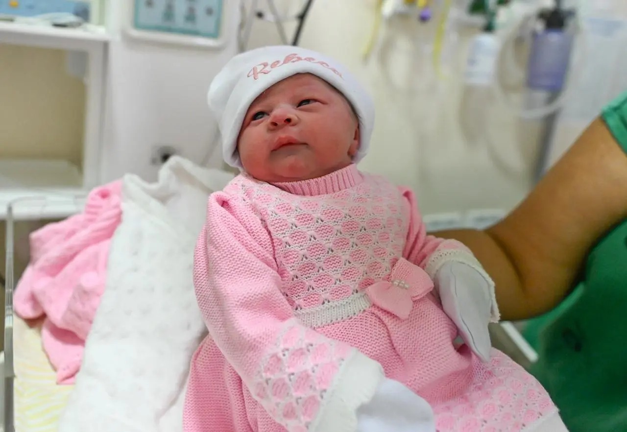 Filha de Camila de Oliveira Juca Geber e Sávio de Freitas Geber, moradores do bairro Dom Giocondo, Rebeca nasceu com 48 centímetros de altura e pesando 3,9 quilos, trazendo emoção e alegria para os pais logo nas primeiras horas de 2026.