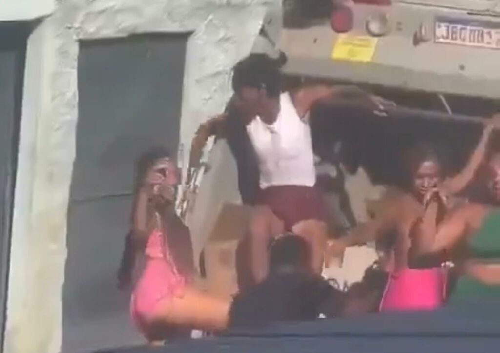 No vídeo, é possível ver mulheres dançando em cima do caminhão de lixo.