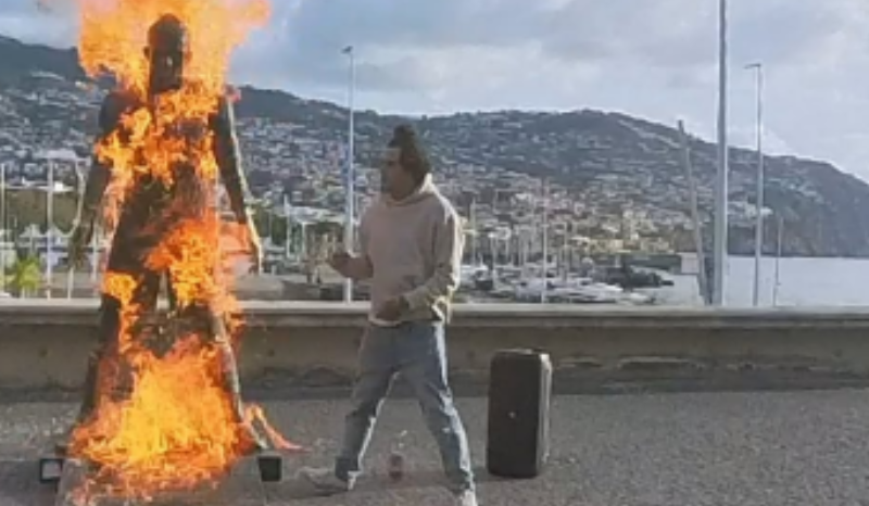 Um homem, que se identifica como @zaino.tcc.filipe nas redes sociais, publicou um vídeo em que aparece incendiando uma estátua do jogador de futebol Cristiano Ronaldo localizada em frente ao Museu CR7, na Ilha da Madeira, em Portugal.