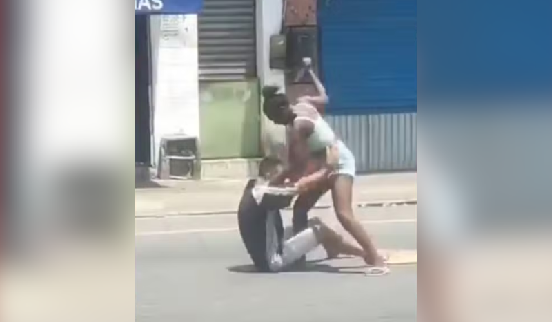 • VÍDEO: mulher ataca homem com facadas durante briga no meio da rua