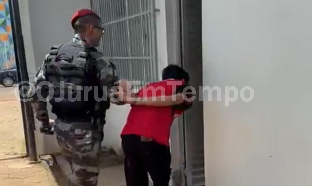 A ocorrência foi registrada na Rua Arco-Íris, no bairro Vitória. De acordo com informações da polícia, o suspeito, identificado pelas iniciais Diogo K. da S. de A., tentou fugir ao perceber a aproximação da equipe, pulando o muro dos fundos de uma residência. Ele foi alcançado e detido logo em seguida.