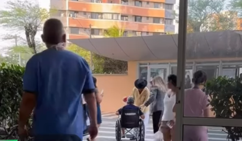 A cena da alta foi registrada em vídeo pela neta, Luana Carneiro, que acompanhava a avó no momento especial.