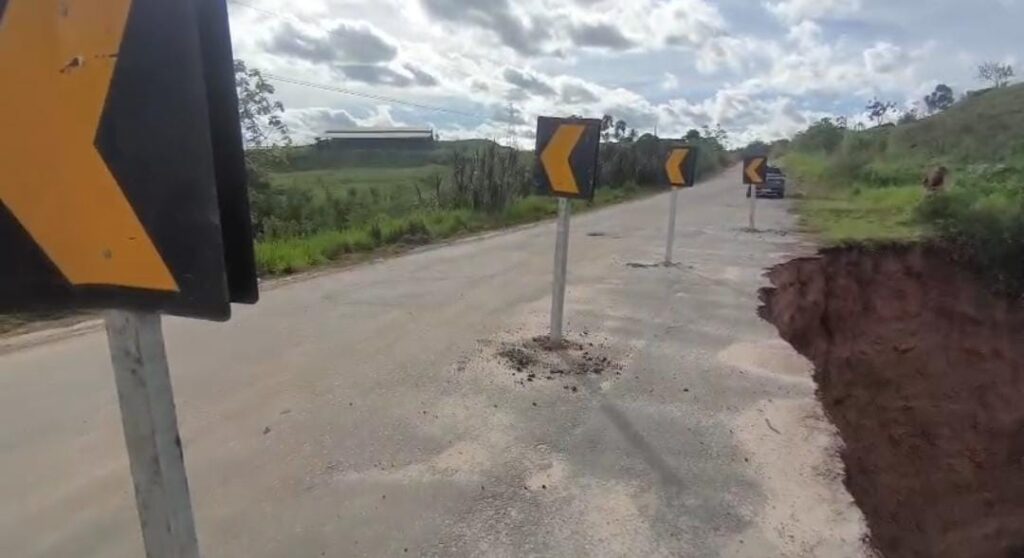 Um vídeo gravado nesta quarta-feira (25) mostra o avanço da erosão próximo à ponte de um córrego da região. Segundo o autor das imagens, parte da base da estrada já foi levada pela força da água, tornando o tráfego perigoso e exigindo atenção redobrada dos motoristas.