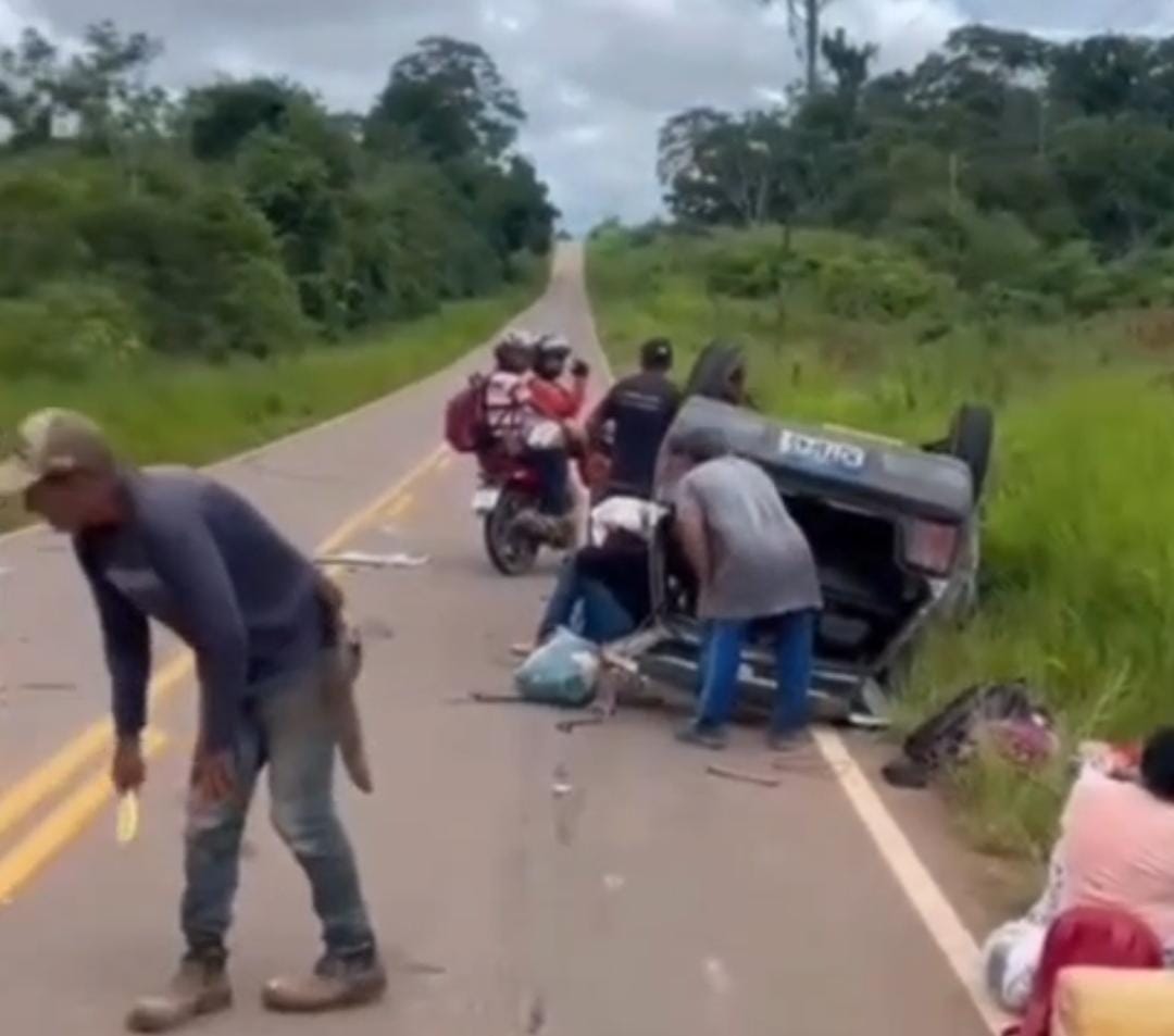 Um veículo Fiat Uno capotou na manhã deste sábado (14) na Rodovia AC-475, nas proximidades do frigorífico de Acrelândia, no interior do Acre.