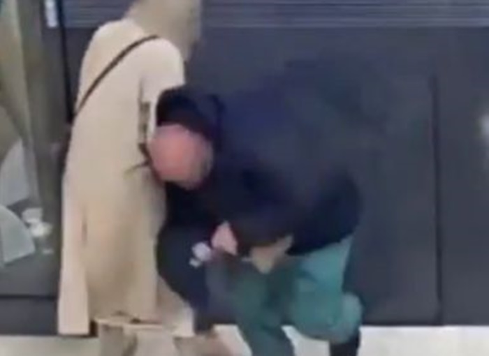 As imagens mostram a família saindo do estabelecimento quando o suspeito entra fingindo ser um cliente, agarra a criança e tenta fugir.
