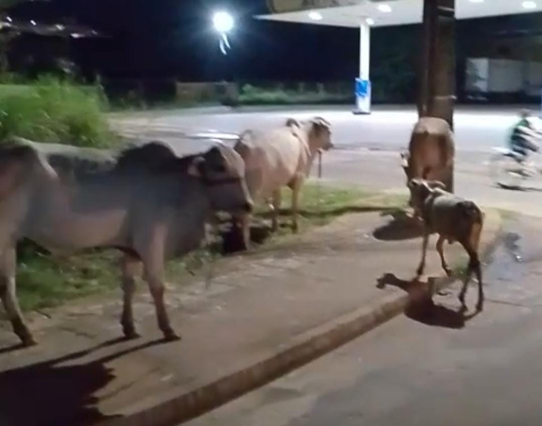 Moradores do bairro da Cobal, em Cruzeiro do Sul, registraram a presença de cinco bois soltos na Avenida Getúlio Vargas, nas proximidades do Posto Santana, conhecido como Posto do Abraão. Os animais caminhavam juntos pela rua, atravessando a pista e chamando a atenção de quem passava pelo local.