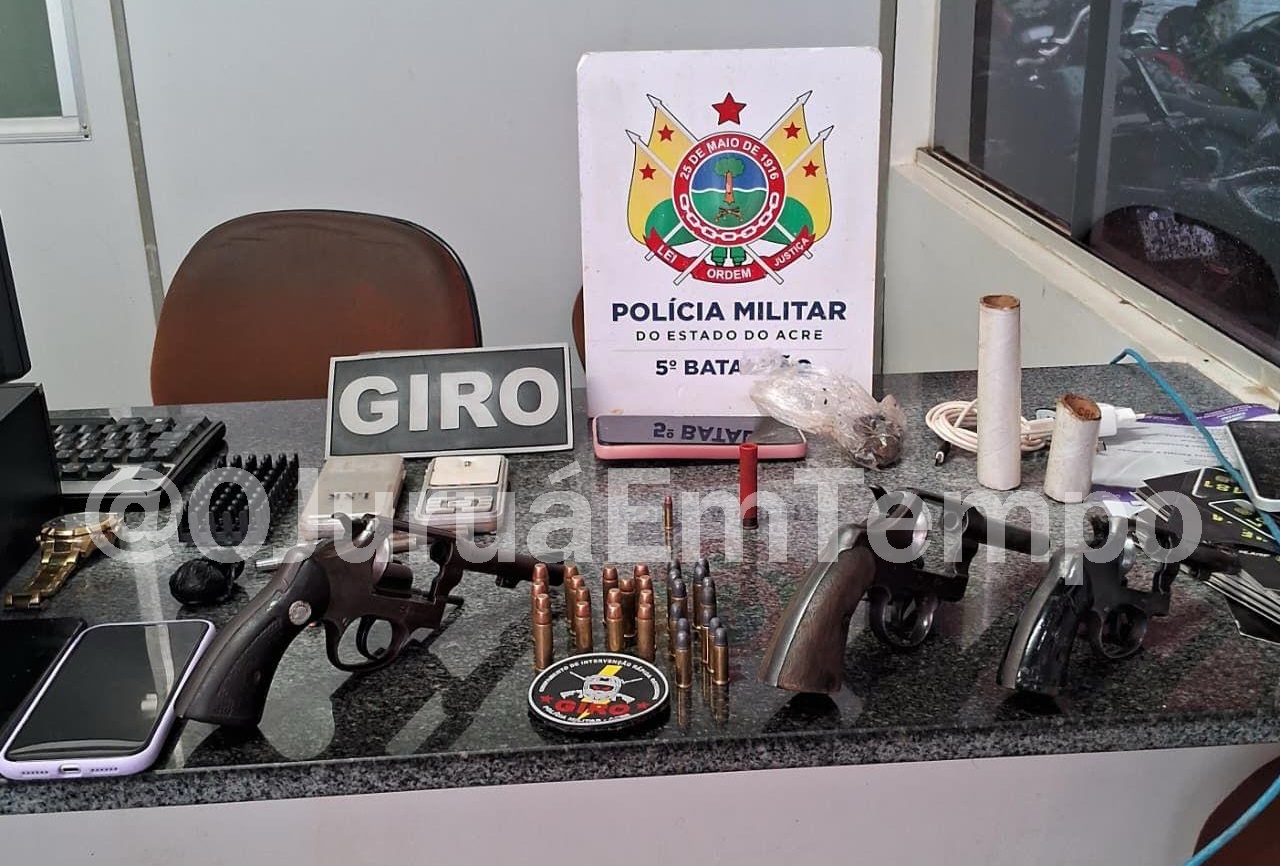 Durante a operação, foram apreendidos três revólveres, calibres .38 e .32, todos municiados, além de diversas munições de diferentes calibres. No interior do imóvel, os policiais encontraram celulares, balanças de precisão, porções de substâncias aparentando ser cocaína e maconha, entre outros objetos.