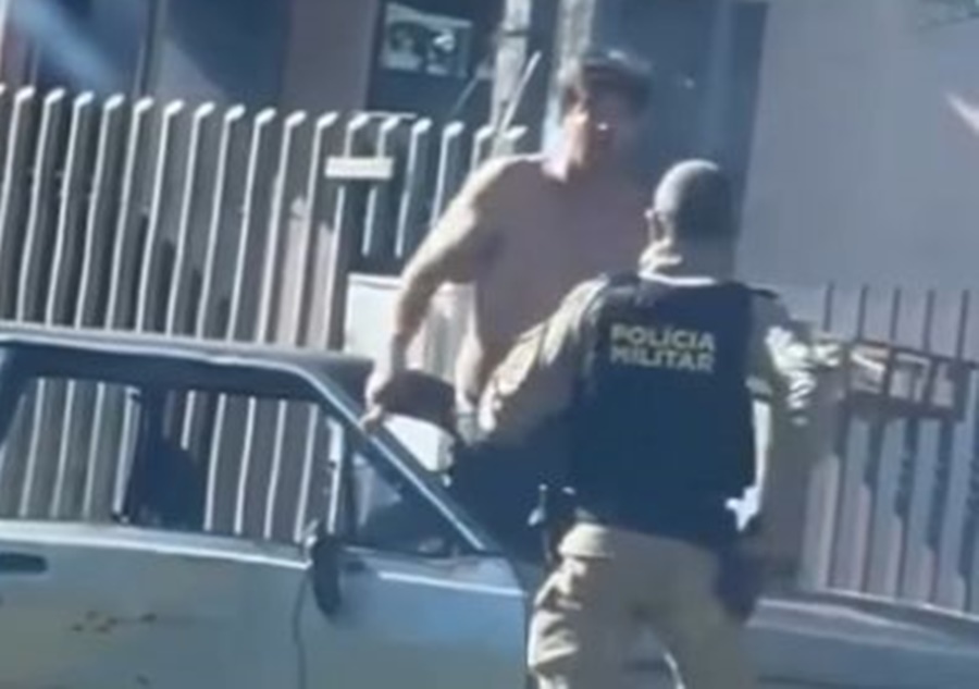 Um vídeo que circula nas redes sociais mostra um policial militar sendo provocado e ameaçado com uma faca por um motorista durante uma abordagem. As imagens foram registradas por uma pessoa que estava dentro de um veículo e presenciou a ocorrência.