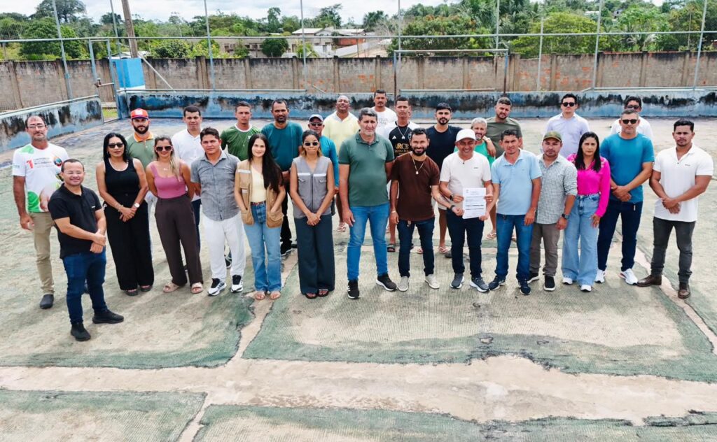 A Prefeitura de Porto Walter oficializou, nesta terça-feira (24), a assinatura da ordem de serviço para o reforço e a revitalização da primeira quadra de grama sintética construída na história do município. A solenidade foi conduzida pelo prefeito César Andrade e pelo vice-prefeito Guarsonio Melo, com a presença de vereadores e secretários municipais.