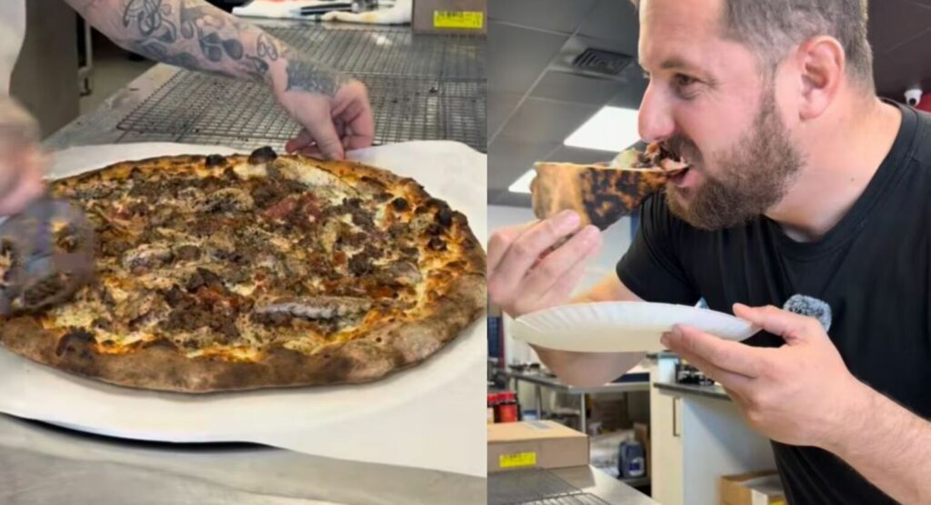 O sabor é comporto por azeite, parmesão, molho ranch, bacon, carne de veado e de iguana, descrita como “um pouco adocicada”.